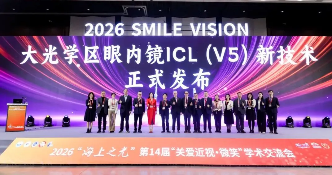 2026年1月9日,黄浦江畔,群贤毕至。2026“海上之光”、第十四届“关爱近视·微笑”学术交流会在上海正式拉开帷幕。本届大会以“全生命周期的眼健康”为核心,汇聚了国内外顶级专家学者齐聚一堂,聚焦于全生命周期的眼健康问题,力求通过多维度、深层次的研讨交流,为眼科学、眼视光学与视觉科学领域注入新的发展动能,推动眼科医学与技术的创新发展。旨在进一步拓展至眼科学与眼视光学、视觉科学与医工交叉领域的最新理念、技术和模式,为人民卫生健康共同体的眼健康事业贡献力量。 威“5”飞跃,更“+”高质 大光学区眼内镜EVO+ ICL(V5)新技术发布