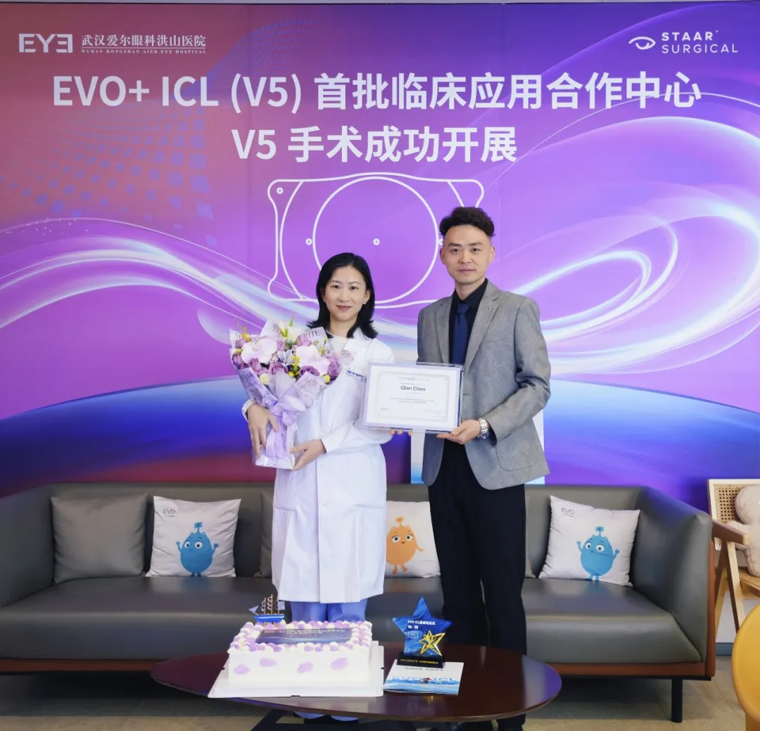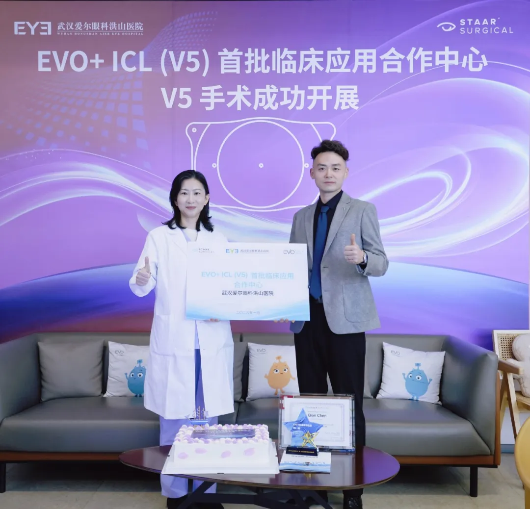 2026 年 1 月 13 日,武汉爱尔眼科洪山医院正式获授 EVO+ ICL(V5) 全国首批临床应用合作中心,标志着这款以“更大光学区、更优夜视力”为核心优势的新一代ICL技术从全球共识走向规范化临床落地,为广大近视患者——尤其是夜间用眼需求较高的人群——带来“昼夜全天候高清”的视觉新体验。 ▲武汉爱尔眼科洪山医院获评“EVO+ ICL (V5) 首批临床应用合作中心” ▲STAAR公司胡耀威先生为陈茜医生颁发EVO+ ICL (V5)手术资格认证证书 EVO+ ICL (V5) 登场:开启高清视觉新阶段 EVO+ ICL (V5) 在前代基础上实现了重要升级,其扩大的光学区设计能更好地覆盖暗瞳,有效减少夜间眩光与光晕,特别适合对夜间视觉质量有较高要求的人群。该技术矫正范围广泛,可处理50-1400度近视及600度以内散光,且作为“加法手术”不切削角膜,具有可逆性,为重视视觉品质及角膜条件特殊的近视患者提供了更优选择。 ▲ 陈茜医生完成我院首例EVO+ ICL (V5) 散光晶体植入手术 本次手术由我院屈光手术科主任、ICL核心专家陈茜医生亲自执刀。患者朱女士(化姓)长期受框架眼镜困扰,对视觉质量要求较高。在得知EVO+ ICL (V5) 即将上市,并获悉武汉爱尔眼科洪山医院具备该技术首批开展资质后,她立即预约检查。朱女士表示,新产品在夜间视觉方面的显著提升,以及医院在新技术临床应用方面的丰富经验与权威团队,是她选择在此手术的重要信心来源。 四大优势,重构高清视觉体验 EVO+ ICL (V5) 在延续ICL手术“保留角膜、可逆取出”核心优势的基础上,进一步优化视觉质量,其四大亮点精准回应近视患者的用眼需求: 瑞士精工定制,精准适配每双眼 依托瑞士高精度加工工艺,V5晶体每一处细节都追求精准,持续创新迭代,保障手术舒适度与术后稳定性,带来国际前沿的卓越视觉享受。 V5晶体采用Collamer™专利材料,生物相容性极高,可有效阻隔紫外线,为眼健康筑起“防护墙”。同时其柔软灵活的特性,贴合眼部生理结构,支持稳定长久的清晰视觉体验。 30年临床验证,300万+全球信赖 ICL技术历经30余年临床检验,在全球75个国家和地区累计植入超过300万片,其安全性与有效性备受医患认可。 引领未来,持续定义高品质视觉生活 随着EVO+ ICL(V5)新晶体技术的正式引入,武汉爱尔眼科洪山医院将以此为依托,持续为近视患者提供更精准、更个性化的“量眼定制”矫正方案。未来,医院将继续秉承“共享全球眼科智慧”的理念,严格执行高于行业规范的质量控制体系,并积极同步国际前沿技术,致力于让每一位患者都能享有安心、可靠的高品质视觉健康服务。 陈茜医生表示:“我们期待将更多像EVO+ ICL(V5)这样的全球领先技术,安全、稳步地应用于临床,并通过真正个性化的‘量眼定制’服务,帮助患者摆脱近视困扰,拥抱更清晰、更自信的人生视野。”